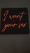 Wall sign with illuminated text I WANT YOUR SEX