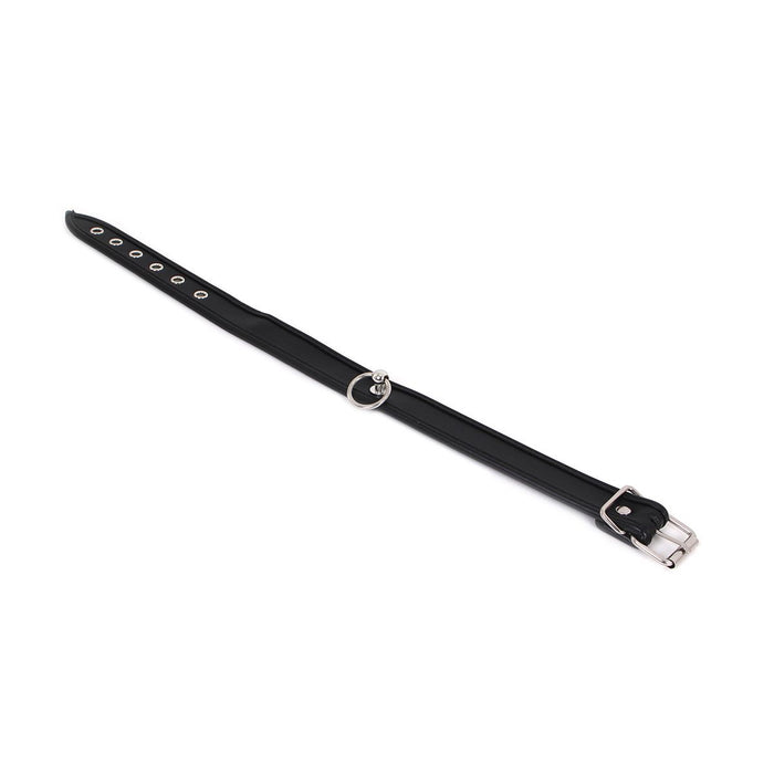 Deze elegante halsband is afgewerkt met een O-Ring en heeft daardoor een spannende look.