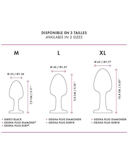 De Geisha Plug is een buttplug met de beroemde Geisha Ball Technologie. Een losse metalen Kogel zorgt voor ongekende sensaties. Met een robijnen kristal om te schitteren en te versieren.