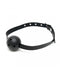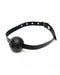 Mondknevel met kunststof bal met gaatjes. De verstelbare lederen band zorgt ervoor dat het mondknevel goed blijf zitten. Leder, Zwart verstelbaar met gespen. Luxe model
