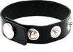 Lederen cockring met siernieten, deze band is verstelbaar door middel van een drukknoop welke verstelbaar is op 4 verschillende posities: 12.5 - 14.5 - 16.5 en 19 cm.