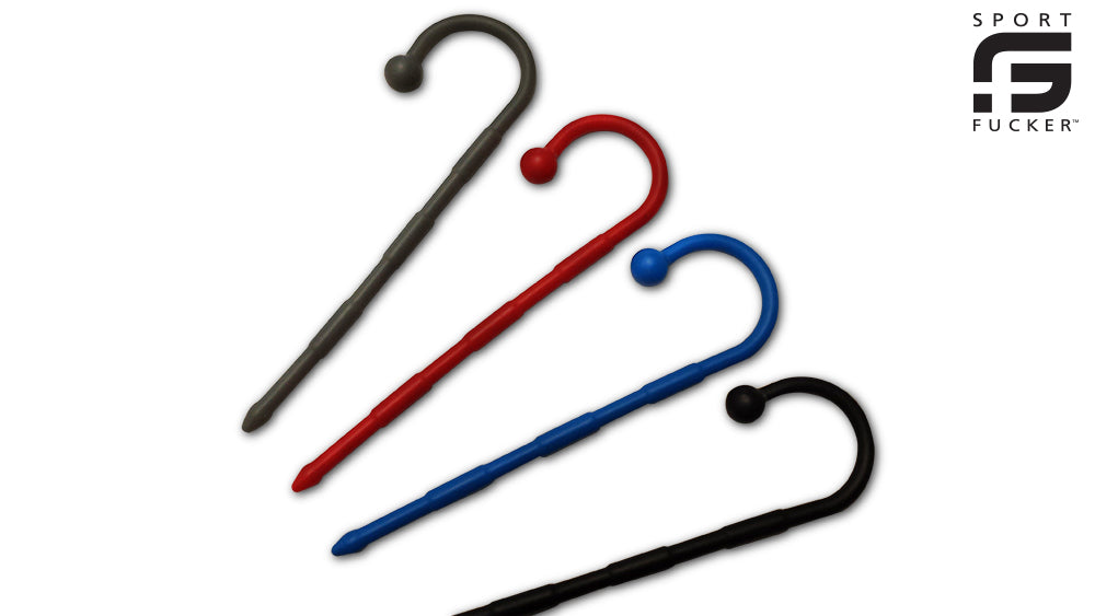 Alle vier de stijlen van Sport Fucker's Sounds zijn er in blauw, grijs, zwart en rood. Gebruik dit geweldige speelgoed alleen met ons steriele glijmiddel.